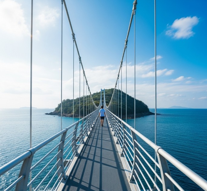 점심을 든든하게 드셨다면, 강진만 가운데 떠 있는 아름다운 섬, '가우도'로 향해보세요. 이곳은 출렁다리를 건너야 들어갈 수 있는데, 바다 위를 걷는 듯한 기분은 정말 특별하답니다. 가우도에는 강진만의 푸른 바다를 가르며 날아가는 짚트랙도 있어서 스릴을 즐기는 분들에게도 안성맞춤이에요. 시원한 바닷바람 맞으며 힐링하기도 좋고, 액티비티도 즐길 수 있으니 꼭 방문해보세요.