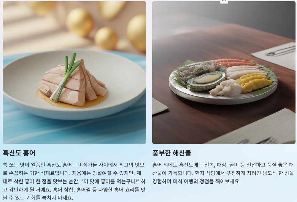 - 흑산도 여행에서 빼놓을 수 없는 미식 체험은 바로 '홍어'입니다!